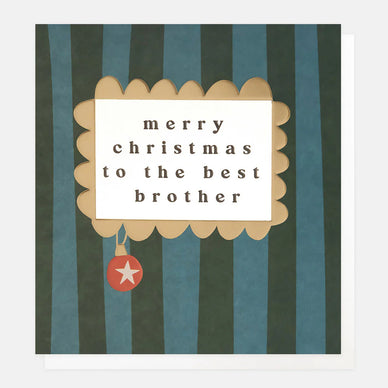 Wish your brother the merriest of Christmases with this cute blue & green striped 'merry Christmas to the best brother' card. Featuring a gold foil scalloped frame and embossing, and left blank inside for you to write you own personal message.