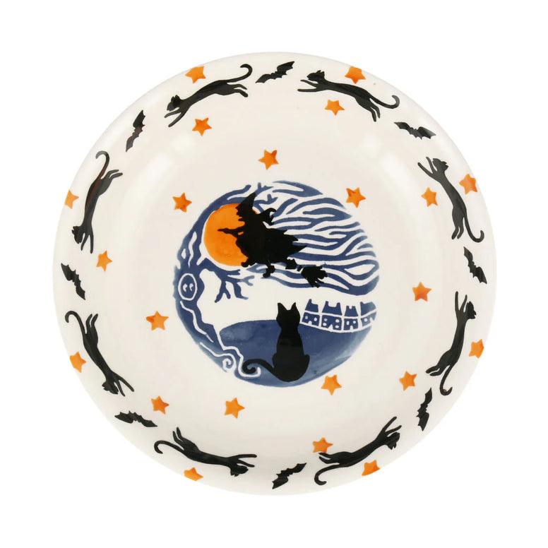 Good witches know never to trust soup that stirs itself in a bowl, that spaghetti which ties itself in knots is either overcooked or haunted, and that the spicier the spell, the tastier the chili. They also know that any food served up in The Wise Witches Medium Pasta Bowl this Halloween will always be eaten by even the fussiest girl witch or boy wizard in the family – for who wouldn’t want to see the sponge-painted decoration of a witch on her broomstick surrounded by darting black cats chasing flying bats on this pottery bowl once they’ve finished all their supper. No morsels or mortals will be left.