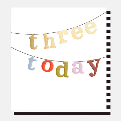 Three Today Multi Text Bunting Birthday Card